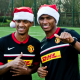Una nota de color se registró este martes en la práctica matutina del Manchester United de Inglaterra, con la presencia de varios jugadores festejando deportivamente la navidad.